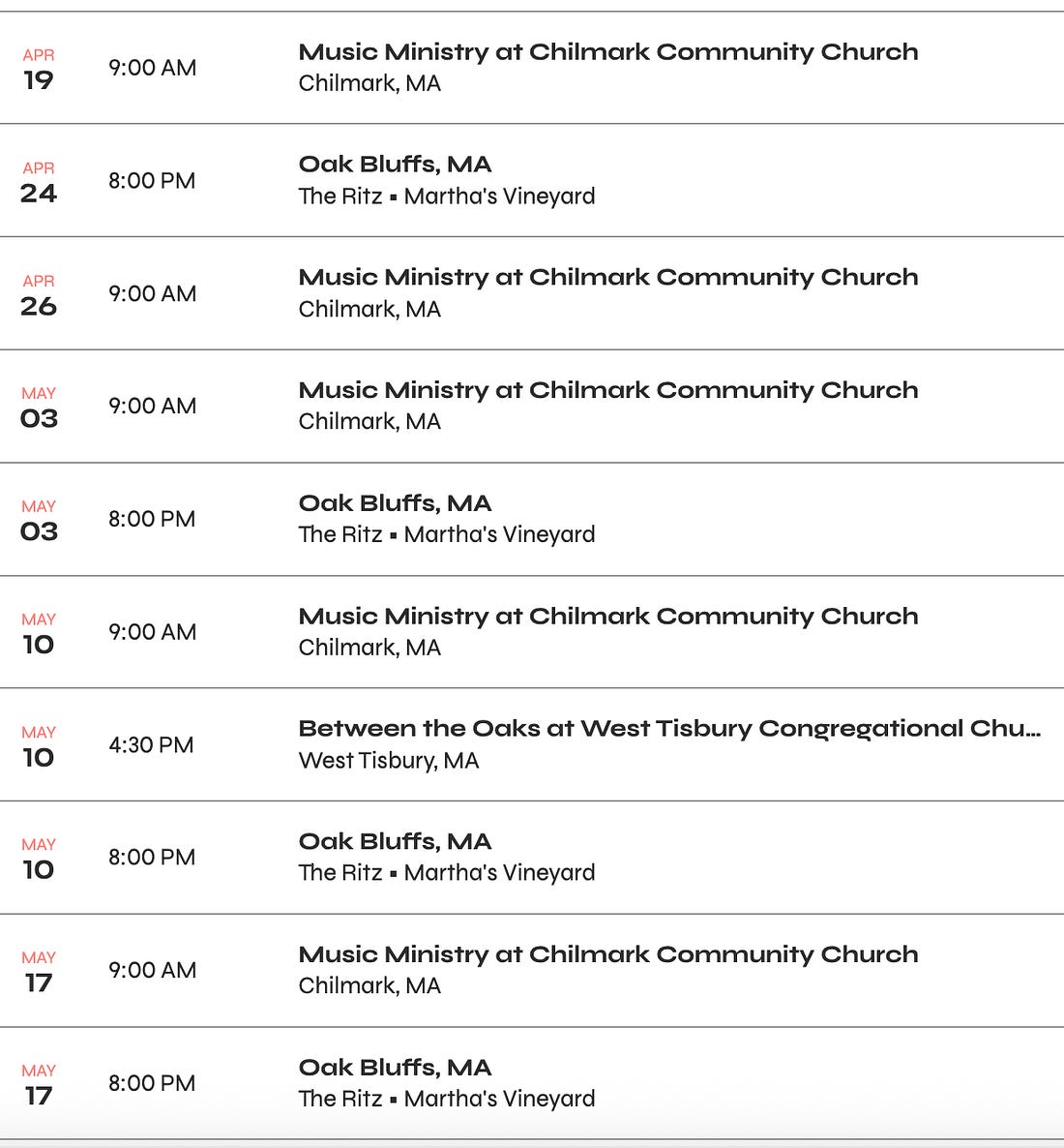 Upcoming Appearances:
